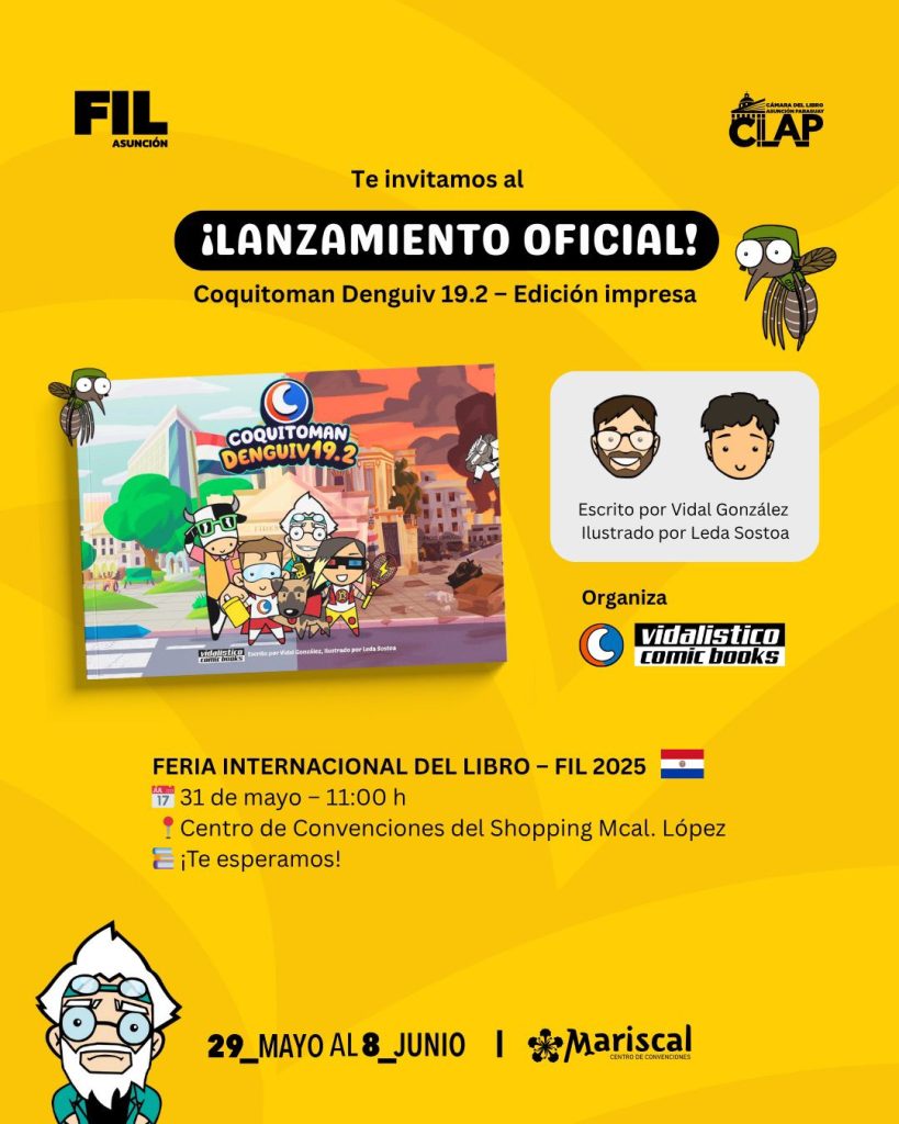 Este sábado 31 de mayo a las 11:00 h, la Feria Internacional del Libro de Asunción será escenario del esperado lanzamiento del nuevo número del cómic infantil “Coquitoman DENGUIv 19.2”.