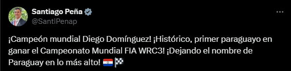 Hasta el Presidente de la Republica, Santiago Peña se manfiestó celebrando el éxito del Piloto Paraguayo en sus redes sociales.
