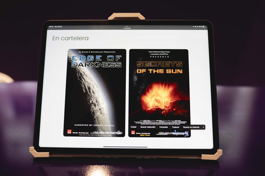 El planetario va a presentar dos shows, el primero llamado “Al filo de la oscuridad” que consiste en un filme que muestra escenas asombrosas de lugares nunca antes vistos en el Universo, reunidos por misiones espaciales que culminaron con descubrimientos revolucionarios en el año 2015.