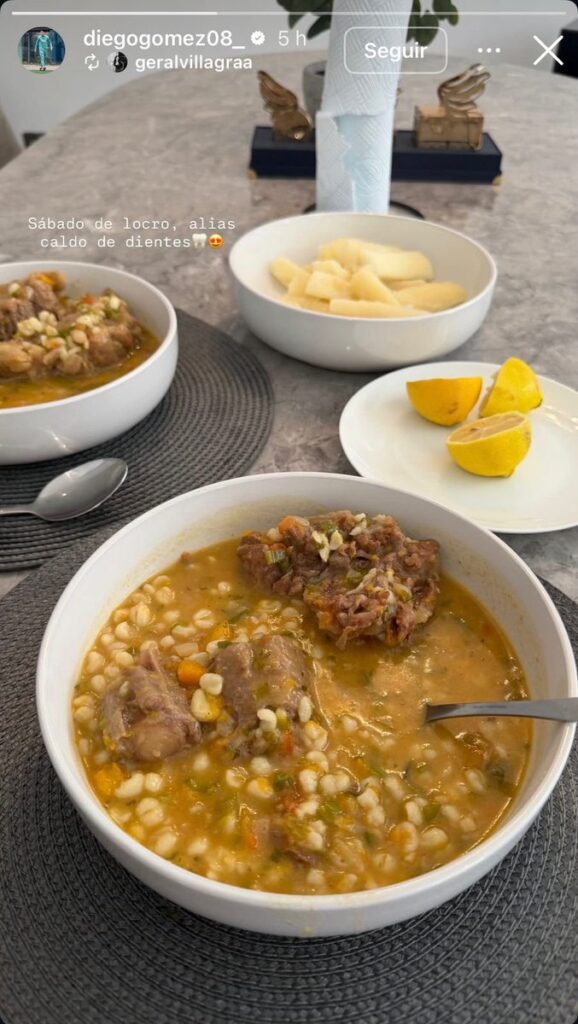 En medio de este proceso, el futbolista mostró un momento más íntimo y cercano a sus raíces. A través de sus redes, compartió imágenes disfrutando de un tradicional locro paraguayo, un plato que no solo alimenta, sino que también conecta con lo emocional.