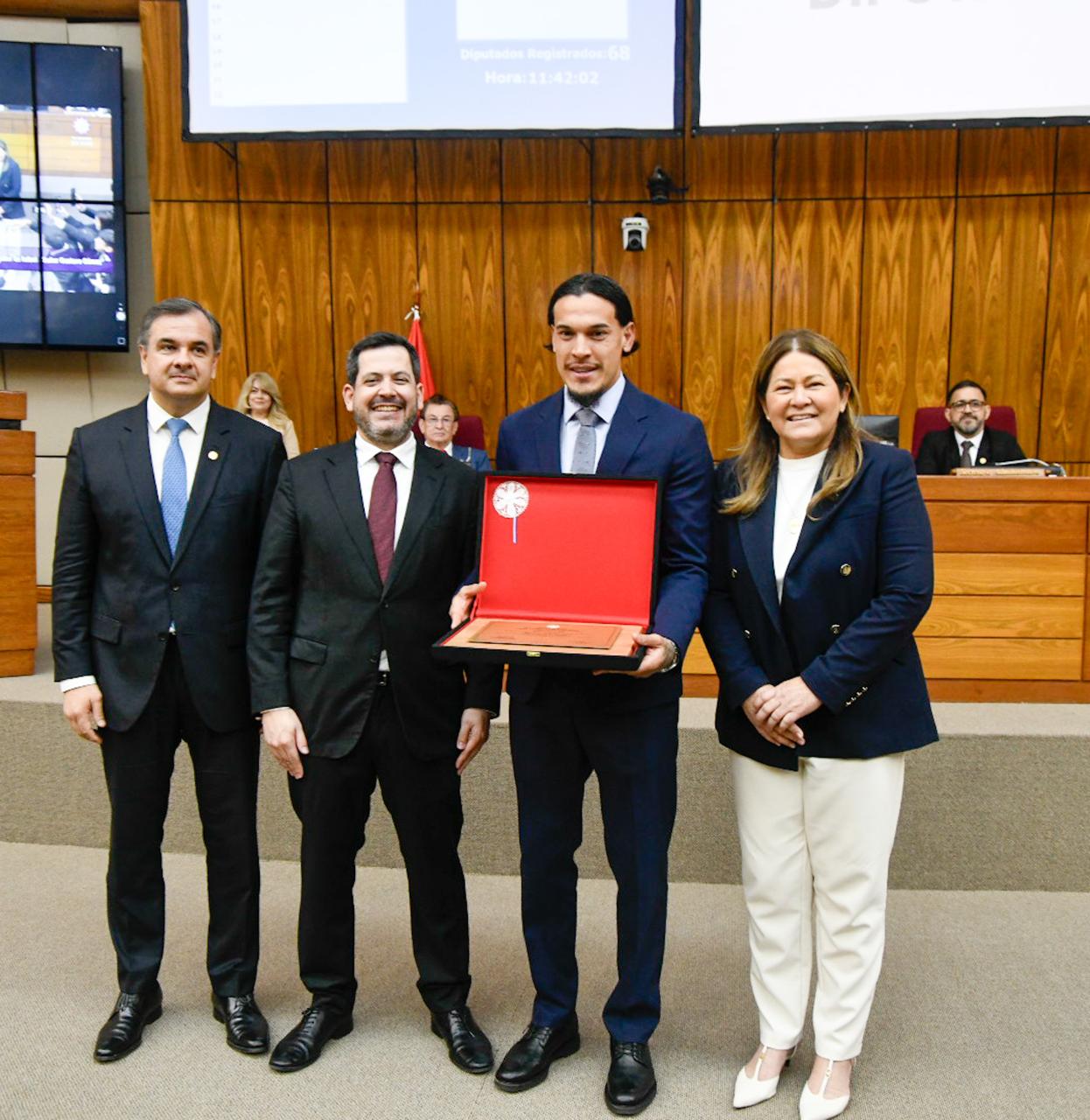 El capitán de la Albirroja recibió este martes un reconocimiento en el Congreso Nacional por su destacada trayectoria y entrega en el fútbol paraguayo.