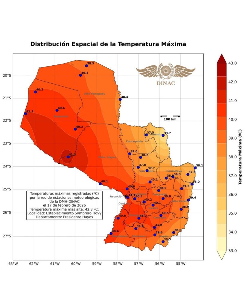 El director de Meteorología e Hidrología, Eduardo Mingo, señaló que existe la posibilidad de que Paraguay haya registrado, en un momento puntual, la temperatura más alta del mundo, aunque aclaró que el dato debe analizarse con cautela.
