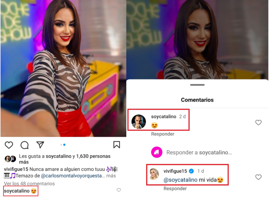 Los usuarios se preguntan si ya se concretó este encuentro, ya que Vivi publicó una foto en su cuenta de Instagram y Catalino interactuó en el posteo, utilizando un emoji con cara de enamorado. Pero eso no es todo, la bella modelo le respondió con un cariñoso «Mi vida», acompañado del mismo emoji enamorado.